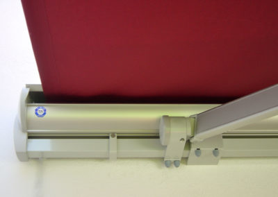 Für das Tuch bietet der rundum geschlossene Kasten, über den die Markise nach rückwärts befestigt ist den idealen Witterungsschutz.